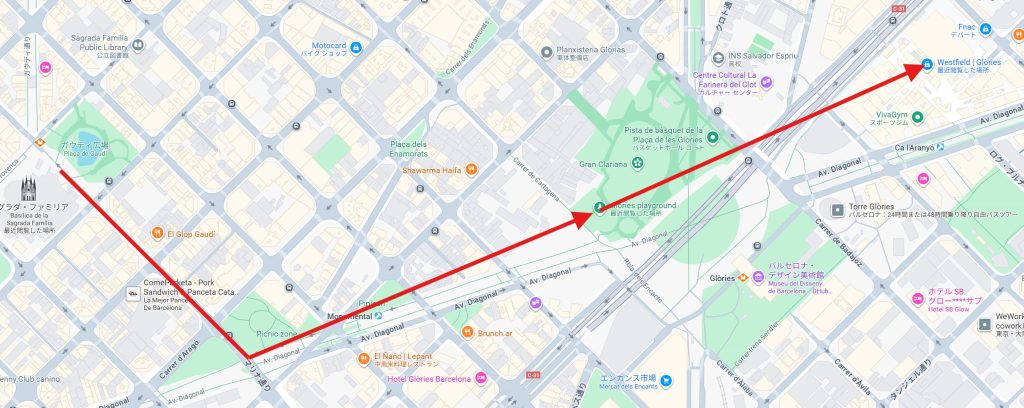 午後は徒歩でGlòries playgroundへ。ホテルがあるサグラダファミリアから1.8Kmの散歩。