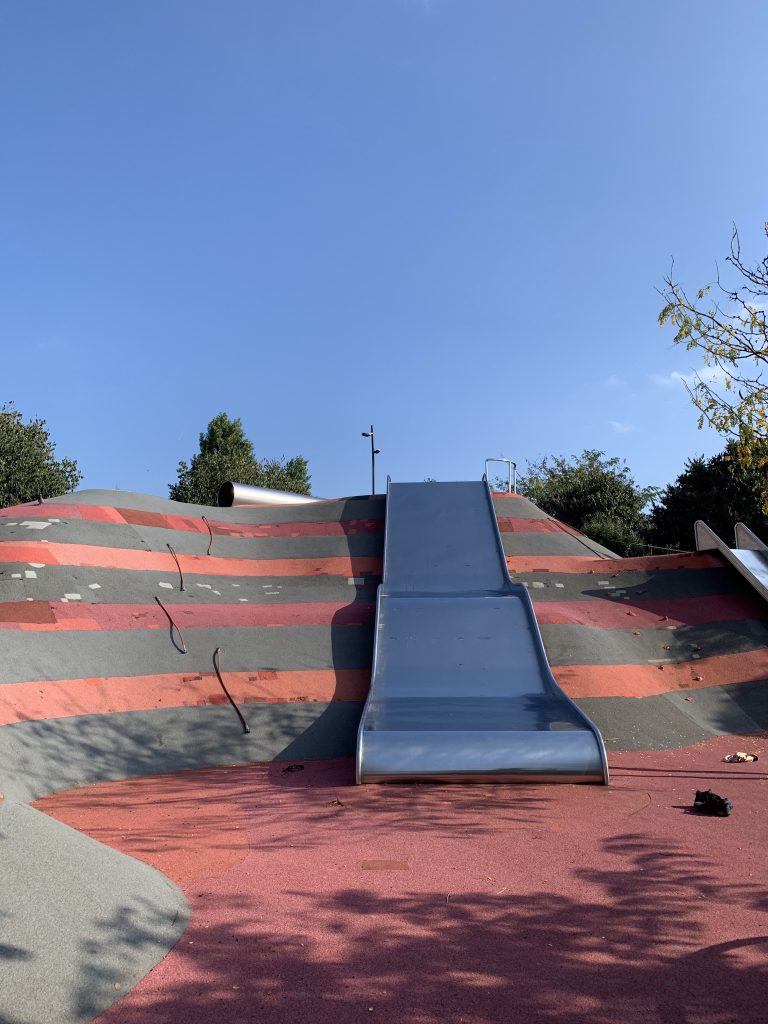 巨大なすべり台や遊具が並び、8歳の娘は夢中で駆け回り、1歳半の子も笑顔で砂場遊び。