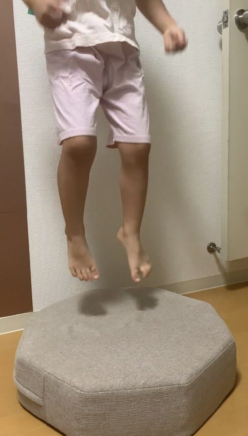 これなら使わないときは壁に寄せて自立して立てれるし、トランポリン以外にもクッションなどとして使えます。